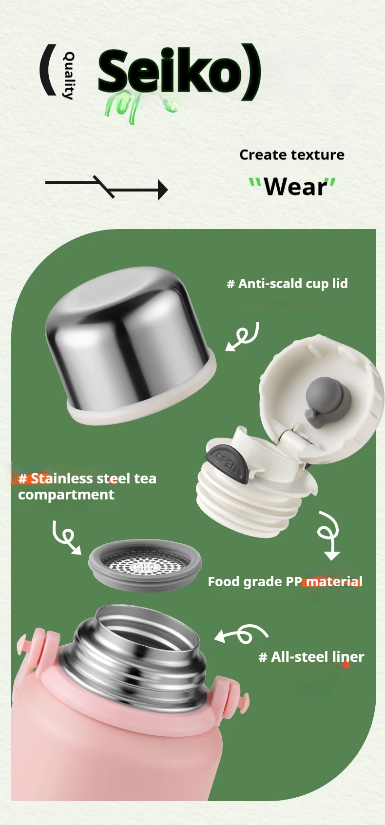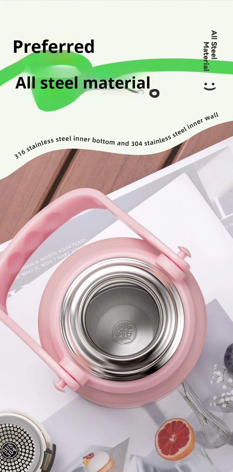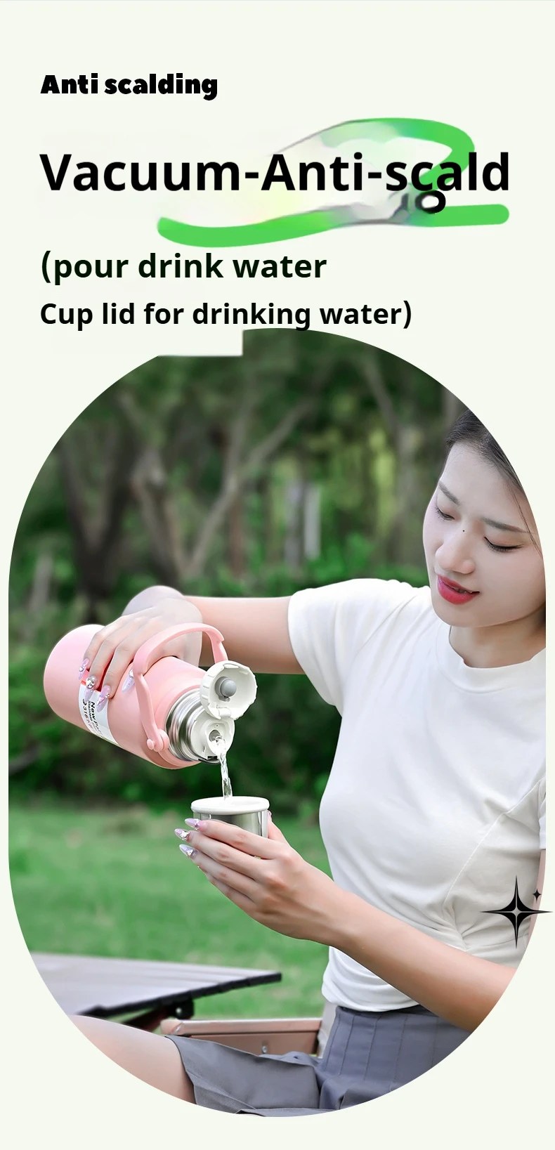 2. Vacuum anti scalding. Pour water and the cup lid can be used for drinking water