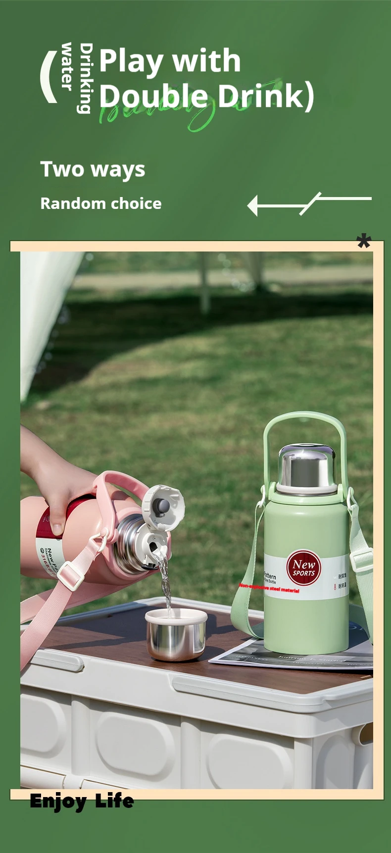 1. Drink freely, keep cool and warm for 12H, large capacity