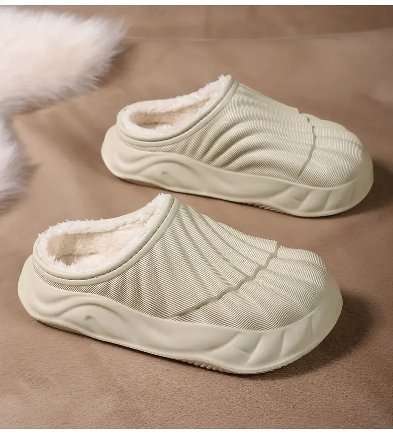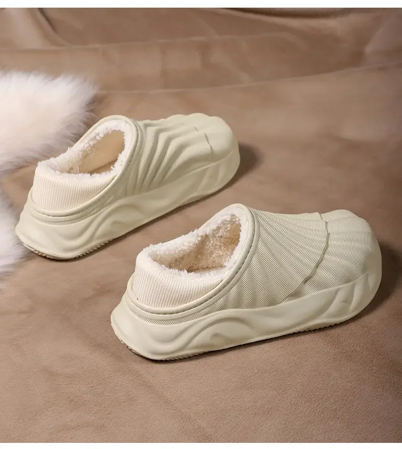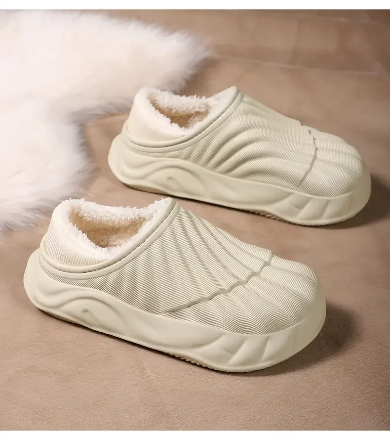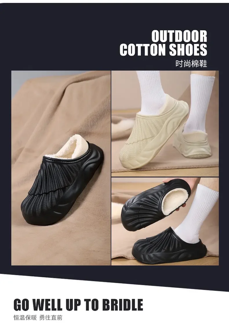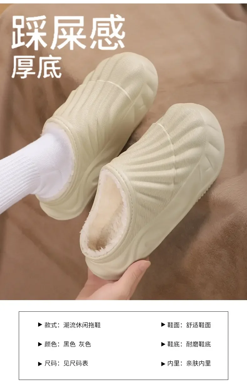 2026 Winter Women Cotton Slippers Warm Non-Slip Thick Bottom Slides Soft Waterproof Home Shoes Plush Men Couple Outdoor Slipper