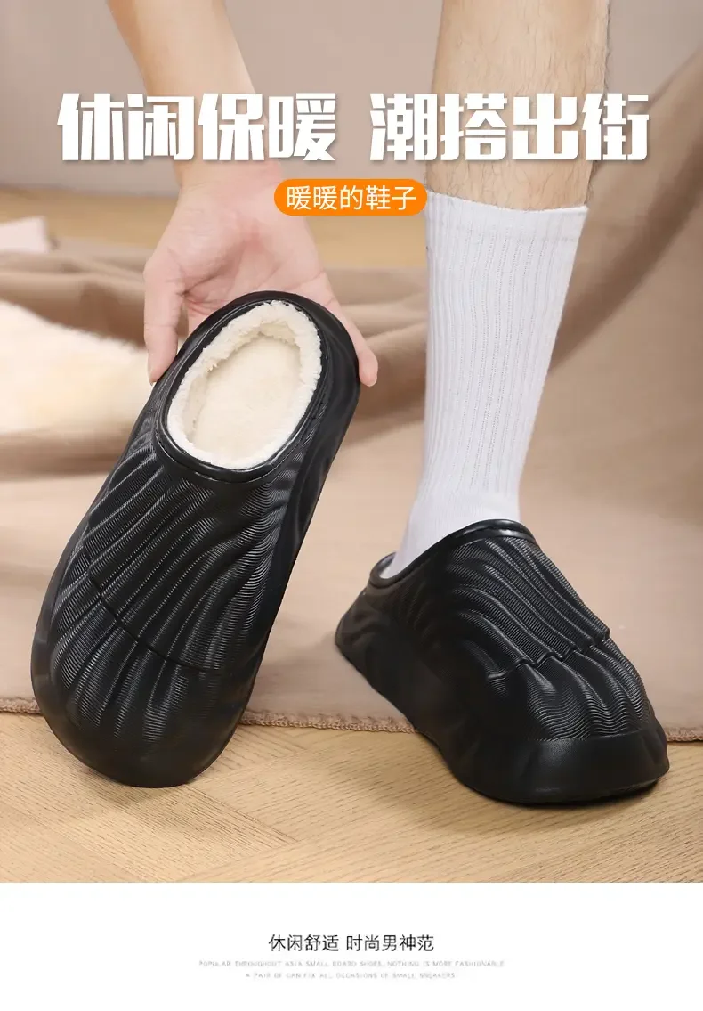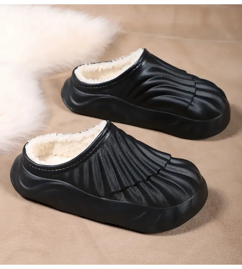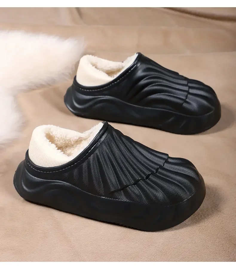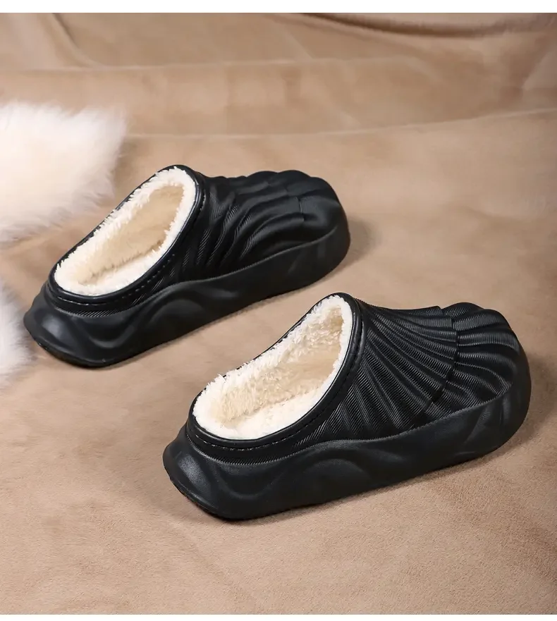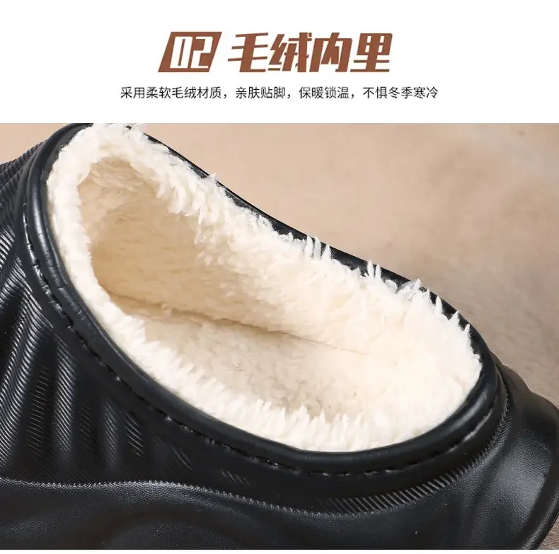 2026 Winter Women Cotton Slippers Warm Non-Slip Thick Bottom Slides Soft Waterproof Home Shoes Plush Men Couple Outdoor Slipper