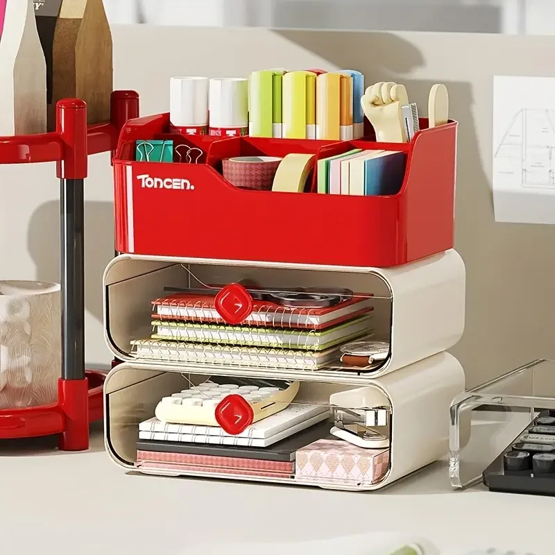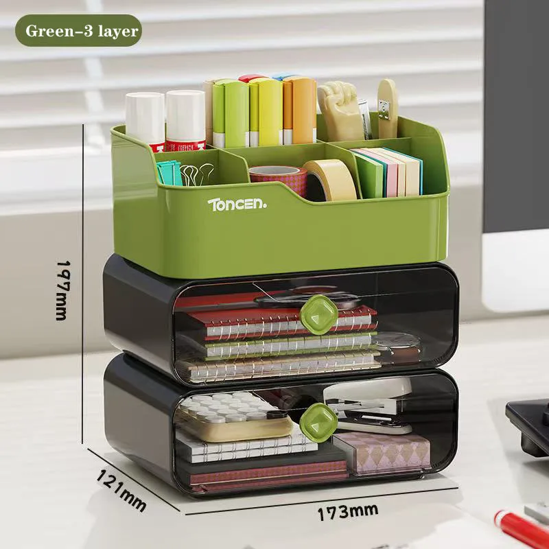 3 Layers Desk Organizer With Drawers Multifunctional Office Accessories Storage Box Stationery Desktop School Supplies