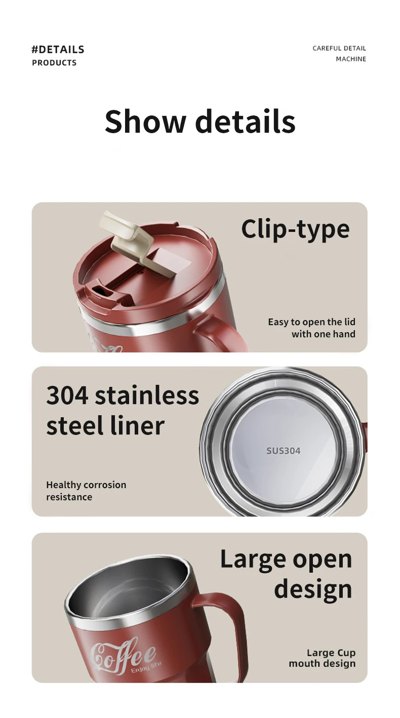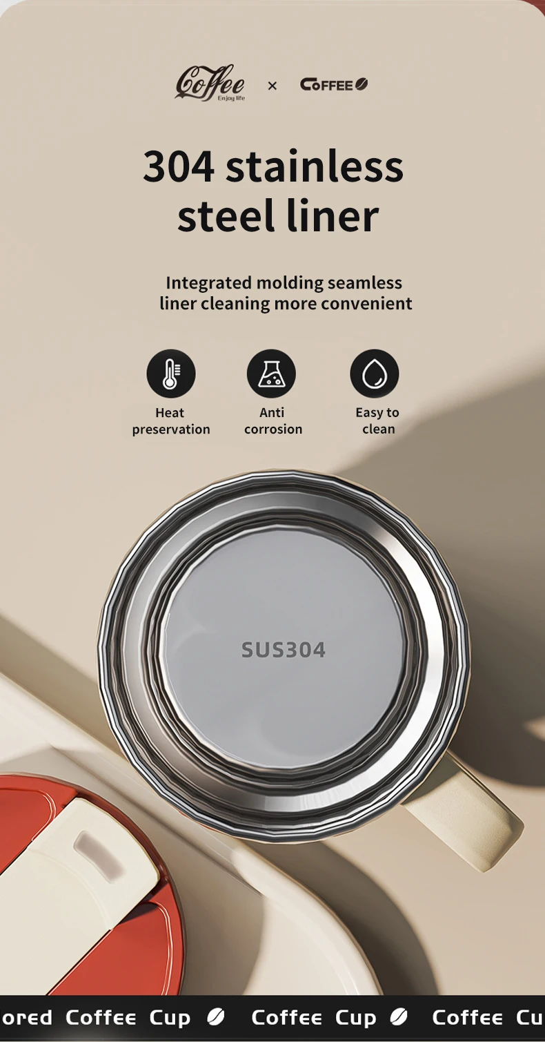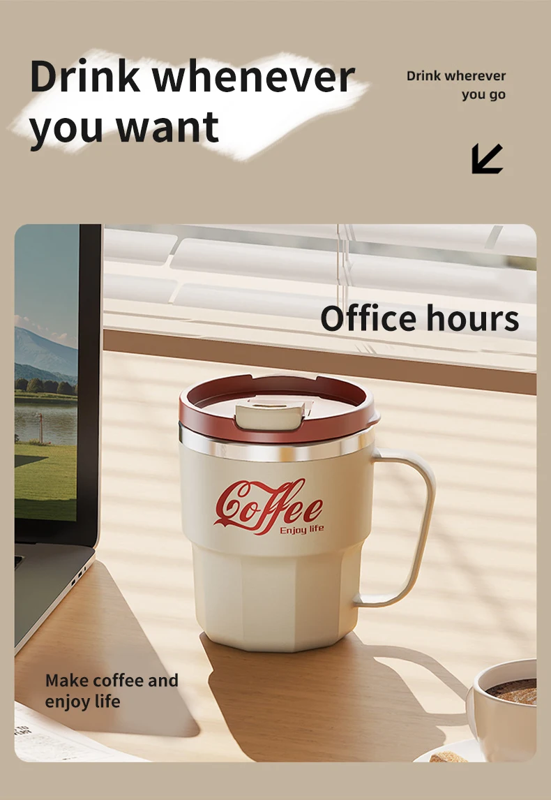 304 Stainless Steel Thermal Water Cup With Handle Portable Double Wall Insulated Mug Sealed Drinking Cup For Cold And Hot Drinks
