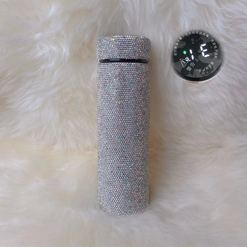 500ml Sparkling Diamond Intelligent temperature display Insulated Cup Stainless Steel Water Bottle Portable Travel Vacuum Flasks
