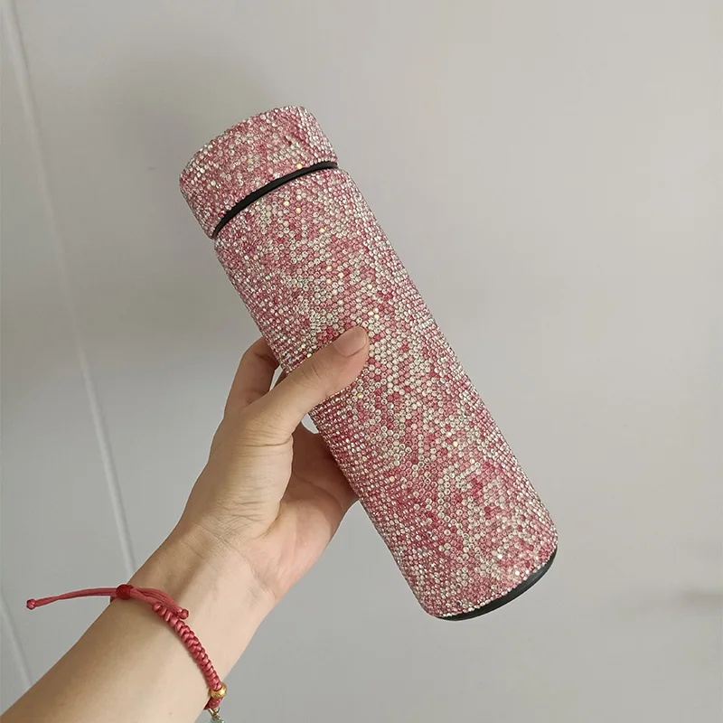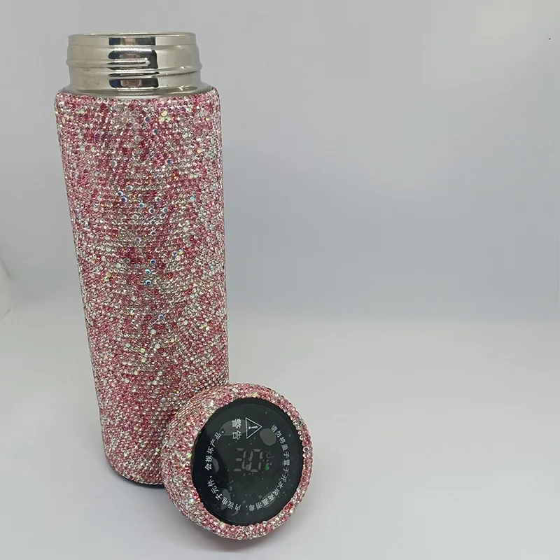 Intelligent temperature display stainless steel insulation cup. Handmade diamond inlay. Shiny appearance, light luxury gift