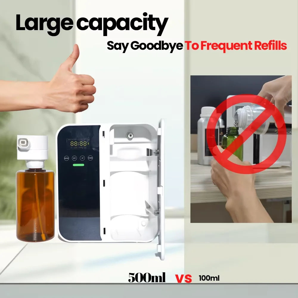 Aromatic essential oils are generally divided into two categories: water-based essential oils and oily essential oils.Water based essential oils are generally suitable for ultrasonic atomization, while oil-based essential oils are generally suitable for two different working principles of fluid atomization.This product requires the addition of pure oily essential oils. And the concentration of essential oils should not be too high, which is not suitable for diluted oily essential oils. If you don't know what kind of fragrance essential oil to add. You can add alcohol to test the spray state of the product. Avoid adding the wrong essential oil to prevent the product from spray. The product spray working time can be set to more than 10 seconds.