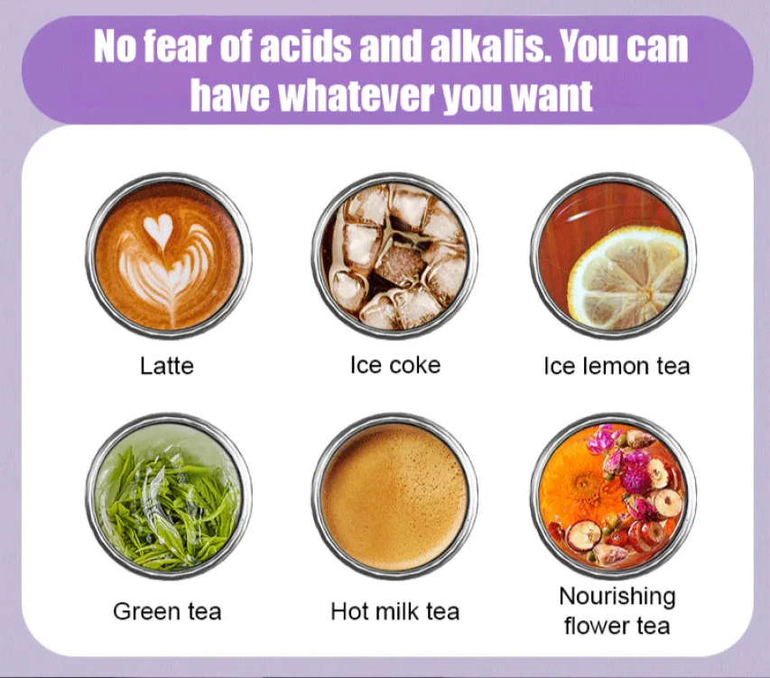 1. Although 304 stainless steel is corrosion-resistant, prolonged exposure to strong acids may cause metal ion precipitation, affecting the material's stability. Therefore, it is not recommended to store acidic beverages (such as lemon juice, cola, vinegar, etc.) for extended periods of time.