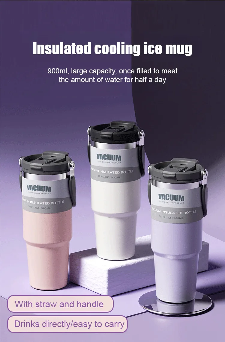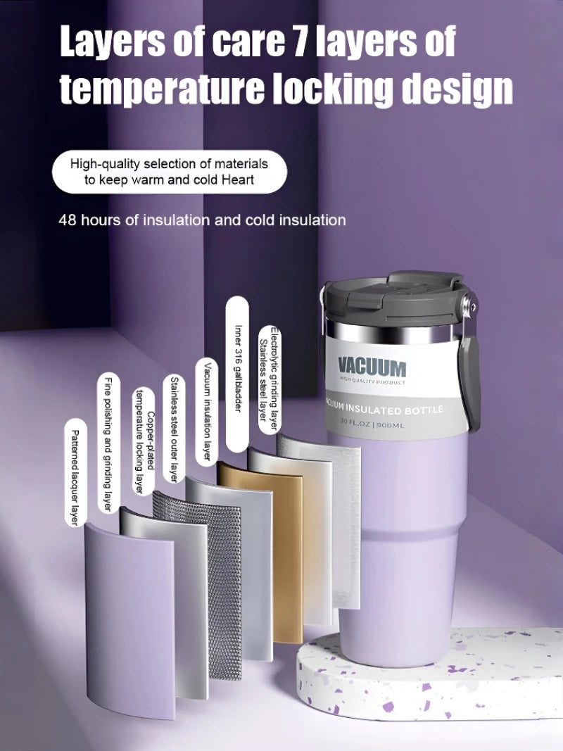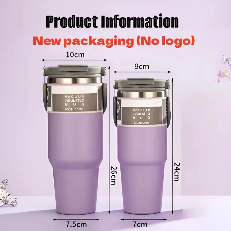 Car Thermal Mug Large Capacity 900/1200ml Stainless Steel Vacuum Thermos Cup Handheld Sport Water Bottle Hot and Cold Drinks