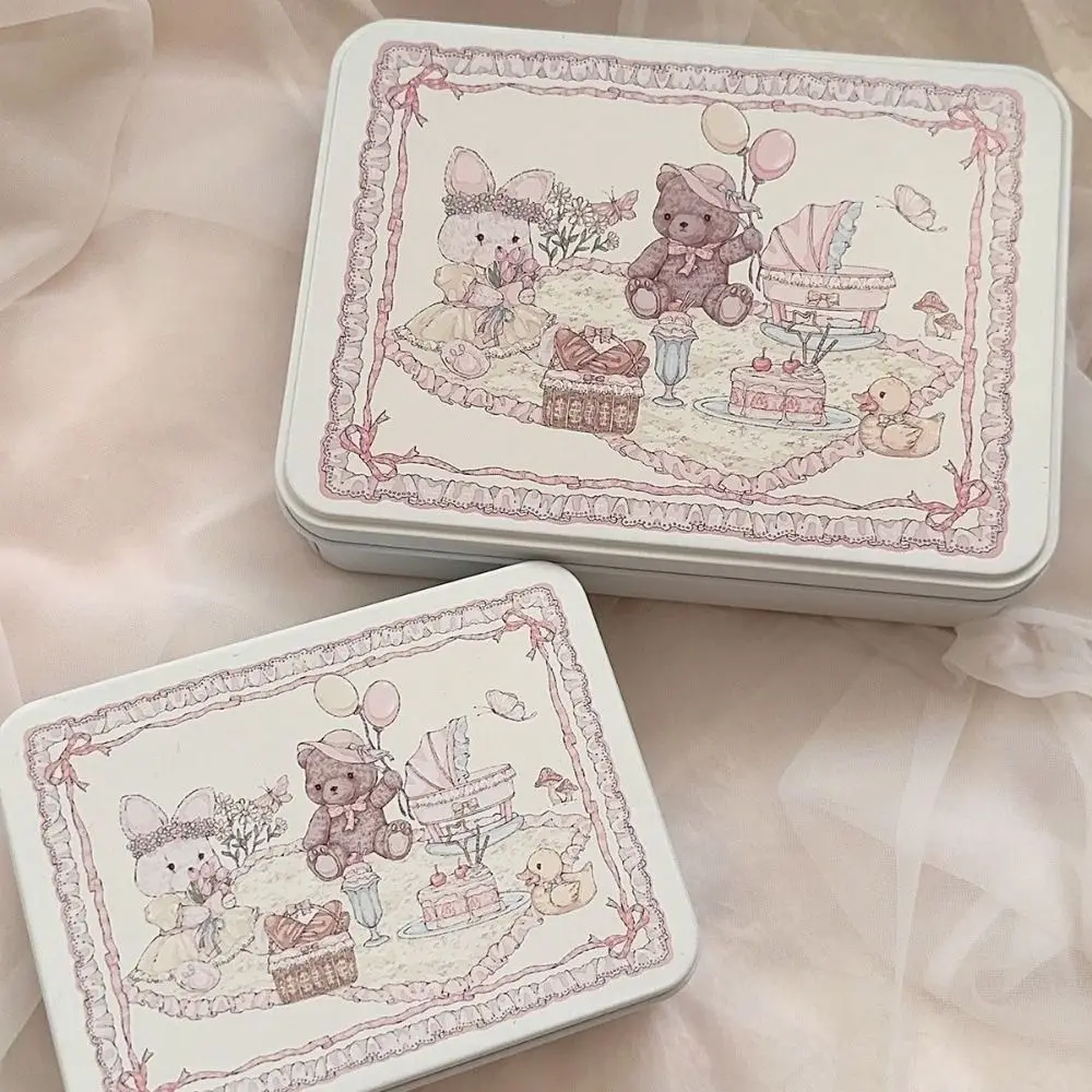 Cartoon Iron Storage Box Big Capacity Small Card Storage Box Desktop Storage School Stationery Kpop Photocards