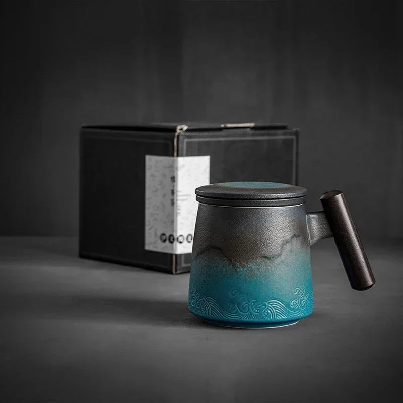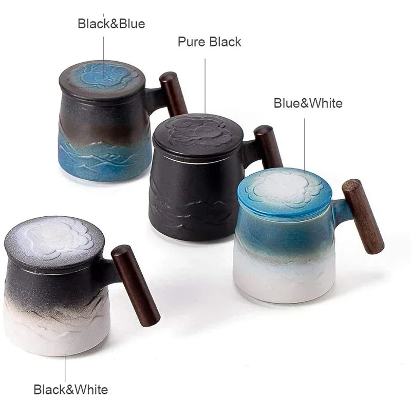 Creative Tea Cups and Mugs Ceramic Mug Thermal Coffee Cup Vintage Beer Water Cup Infuser Lid Wooden Handle Personalized Gifts