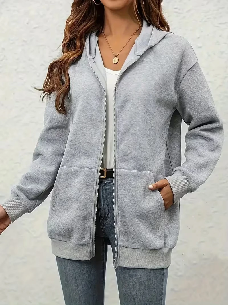 European and American Style Hoodies Women Simple Zip-Up Sweatshirt Sporty Casual Style Minimalist Suitable for Autumn and Winter