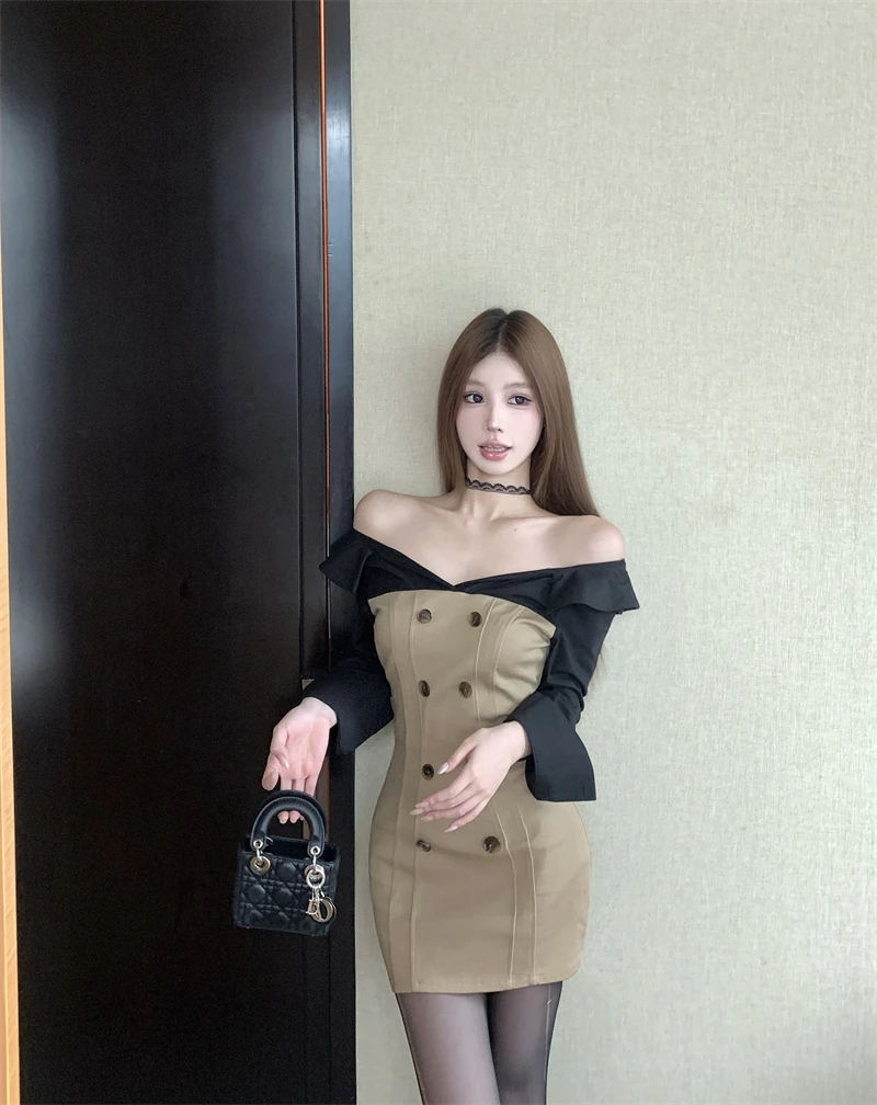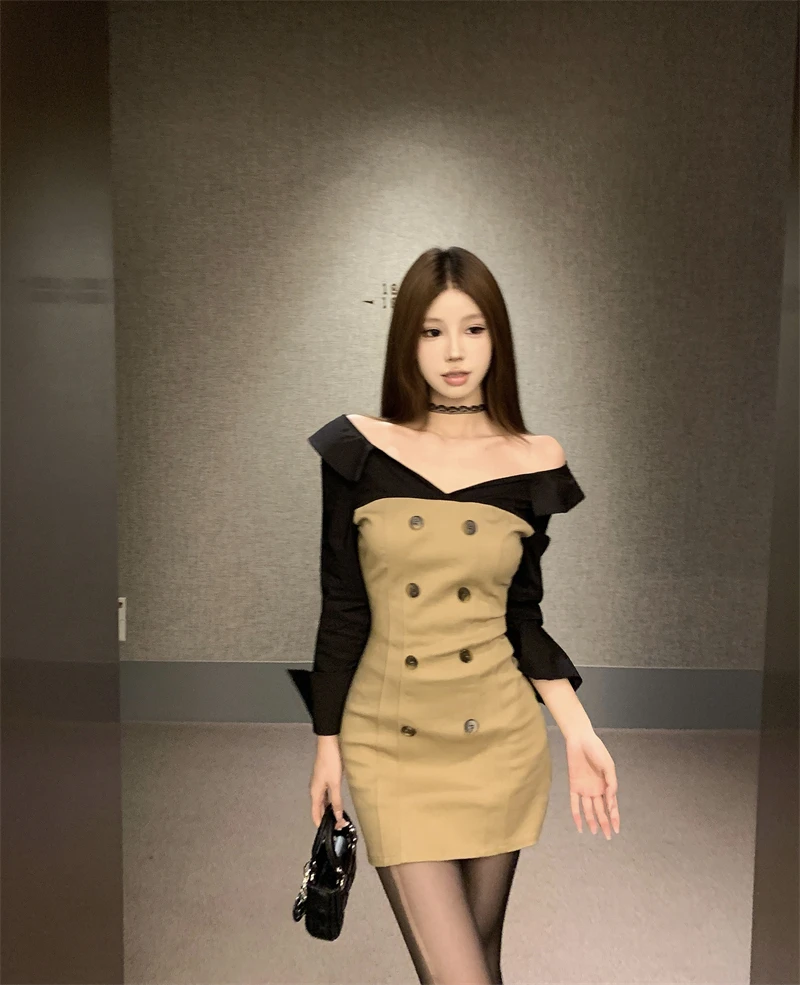 French Elegant Fashion Short Dresses For Women 2024 New Autumn Ladies Korean OL Work Dress Party Vestido Feminino Robe Femme
