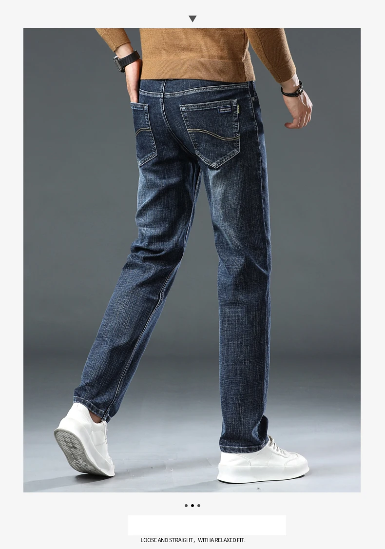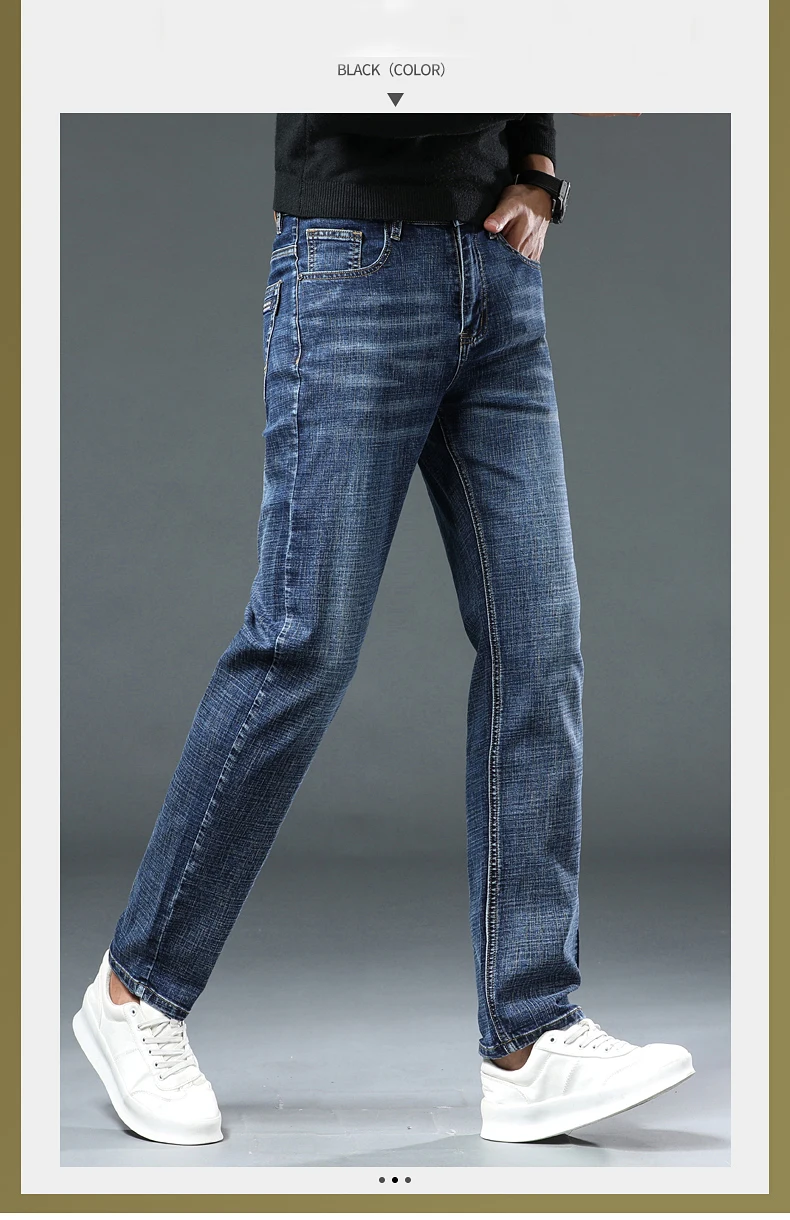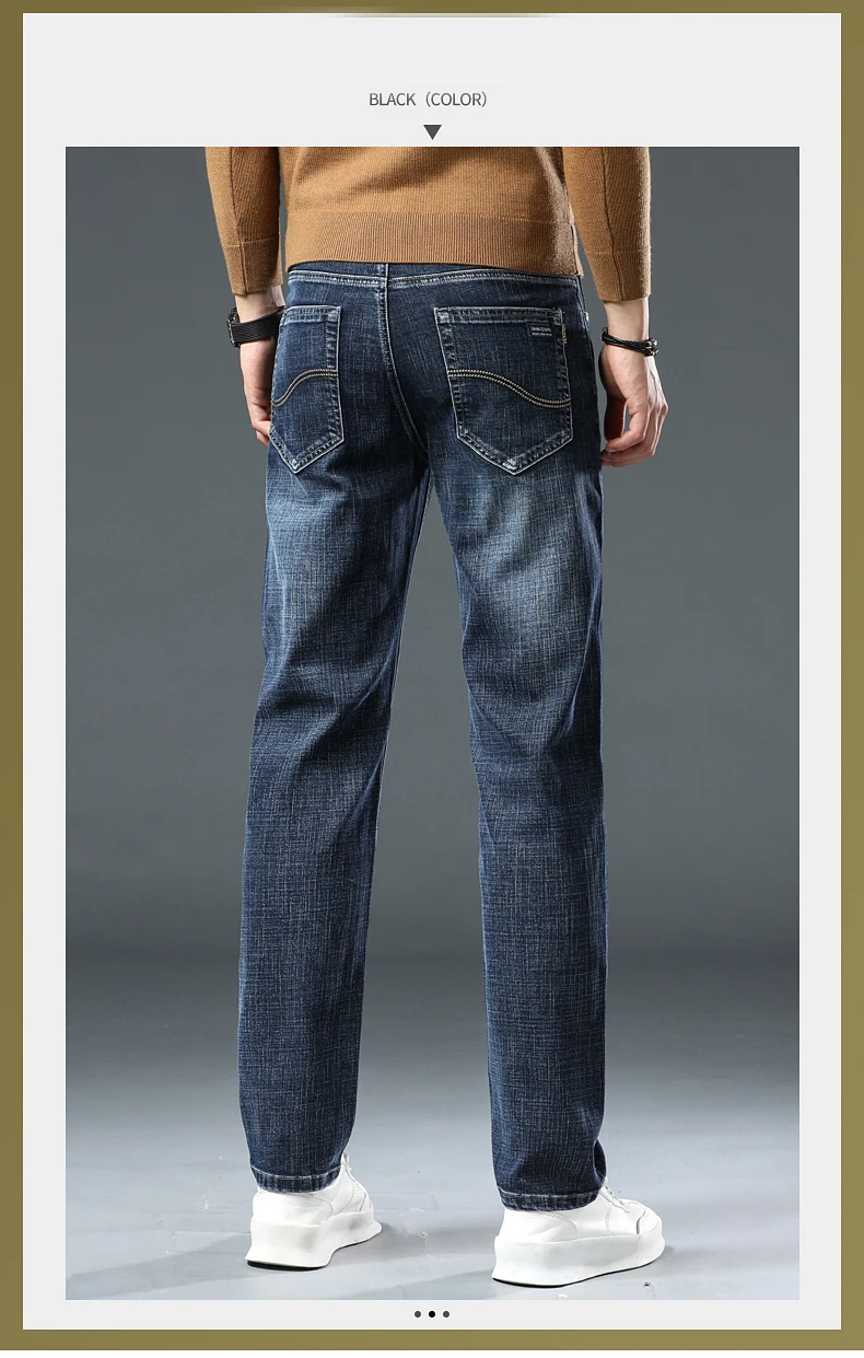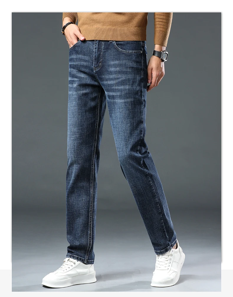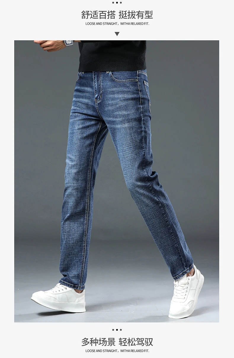 Jeans Pants Man Casual Long Straight Denim Pants Four Seasons Classic Originals Jeans Korean Solid Blue Grey Black Trousers