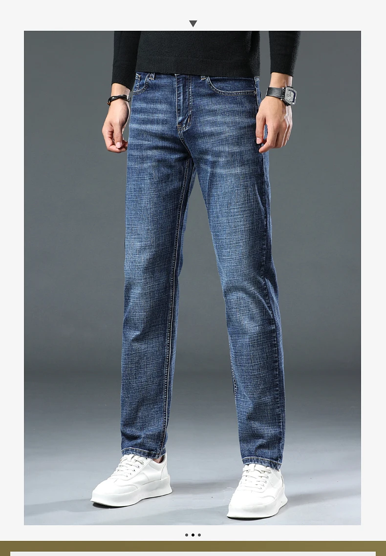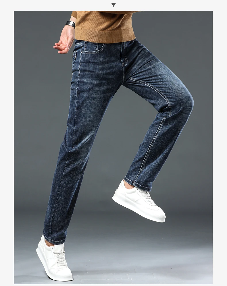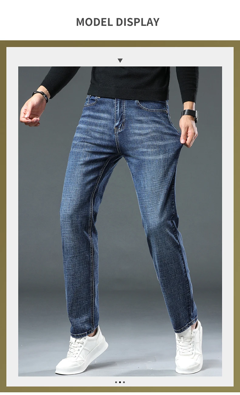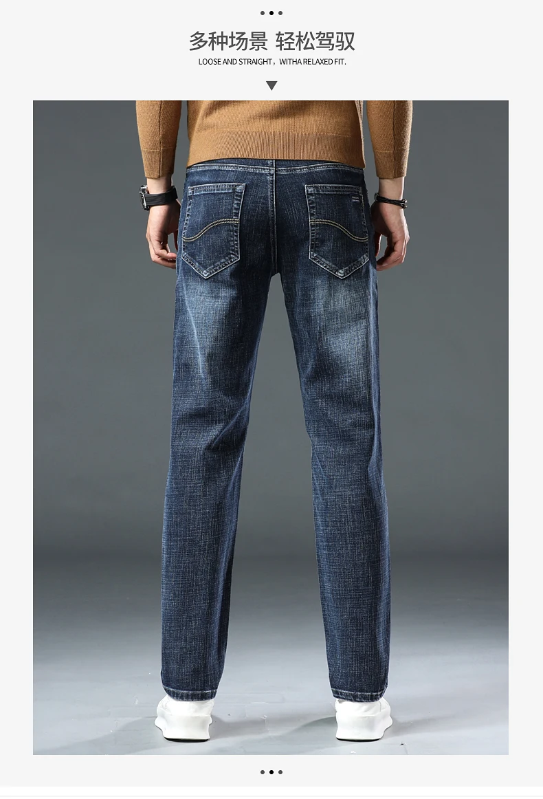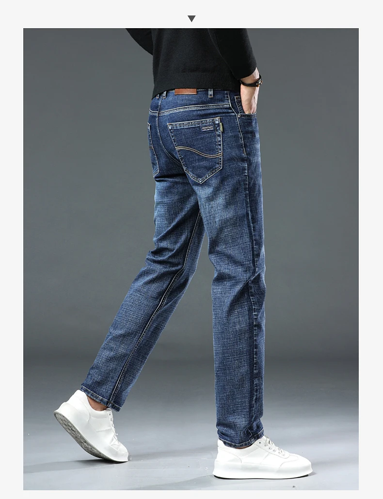 Jeans Pants Man Casual Long Straight Denim Pants Four Seasons Classic Originals Jeans Korean Solid Blue Grey Black Trousers