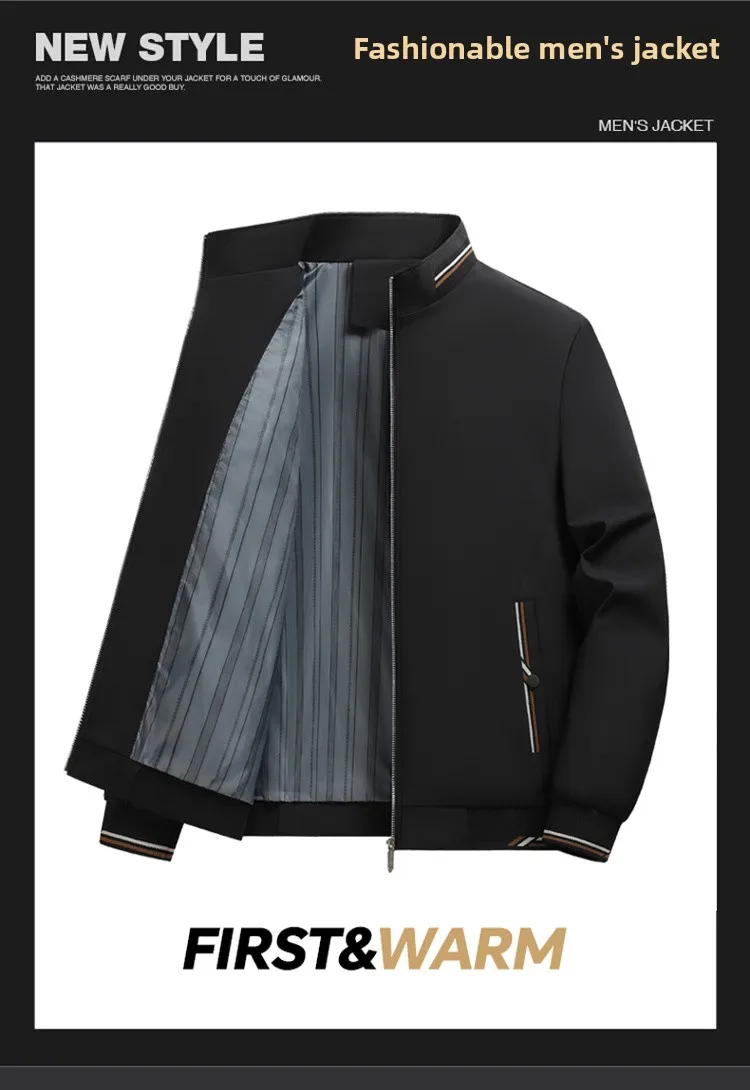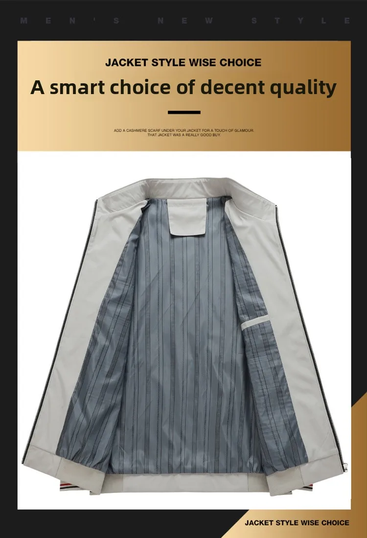 Mens Jacket Casual Fashionable, High Quality Stand Collar Light Outerwear Windproof Comfortable Slim Fit Coat for Walking Sports