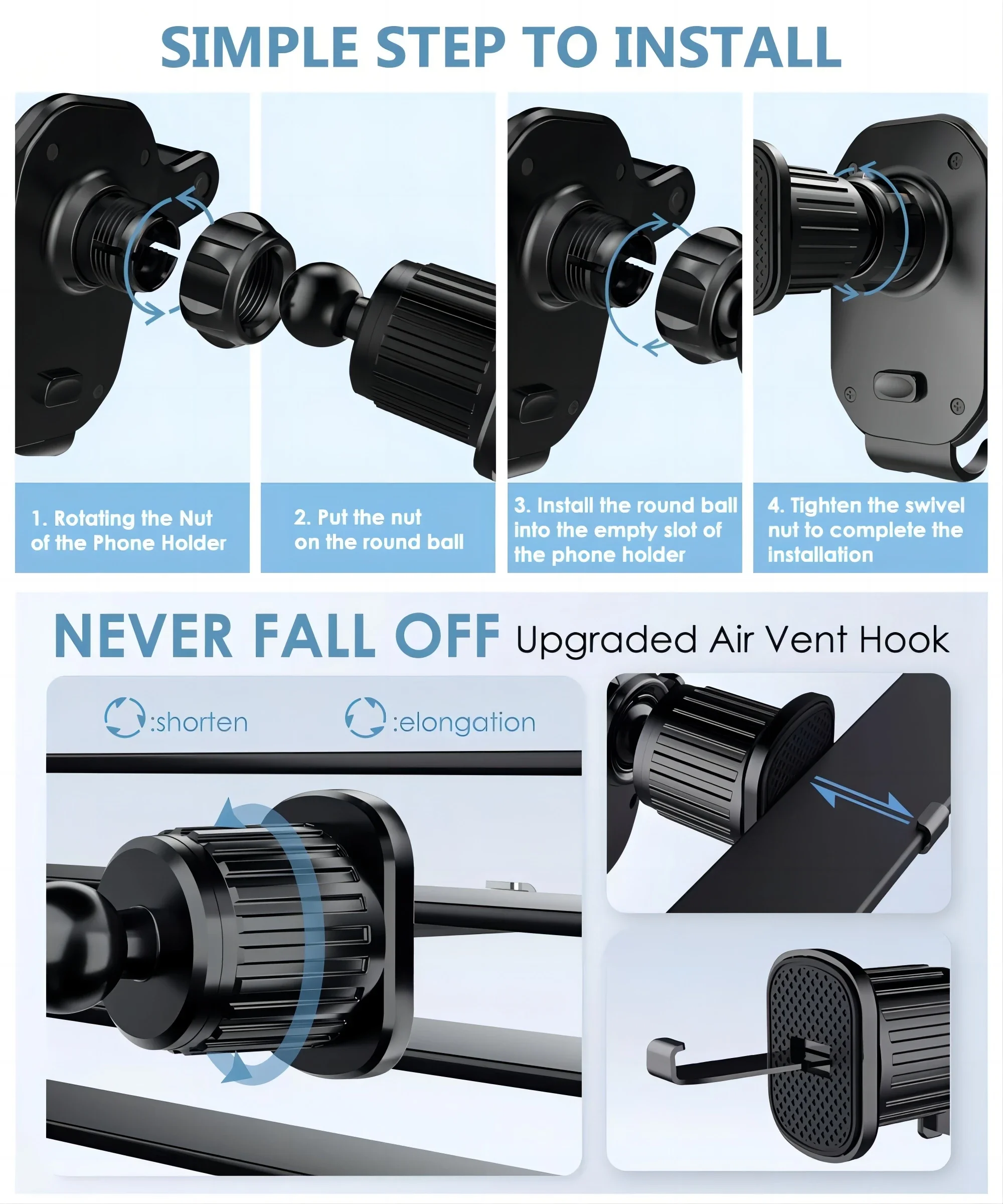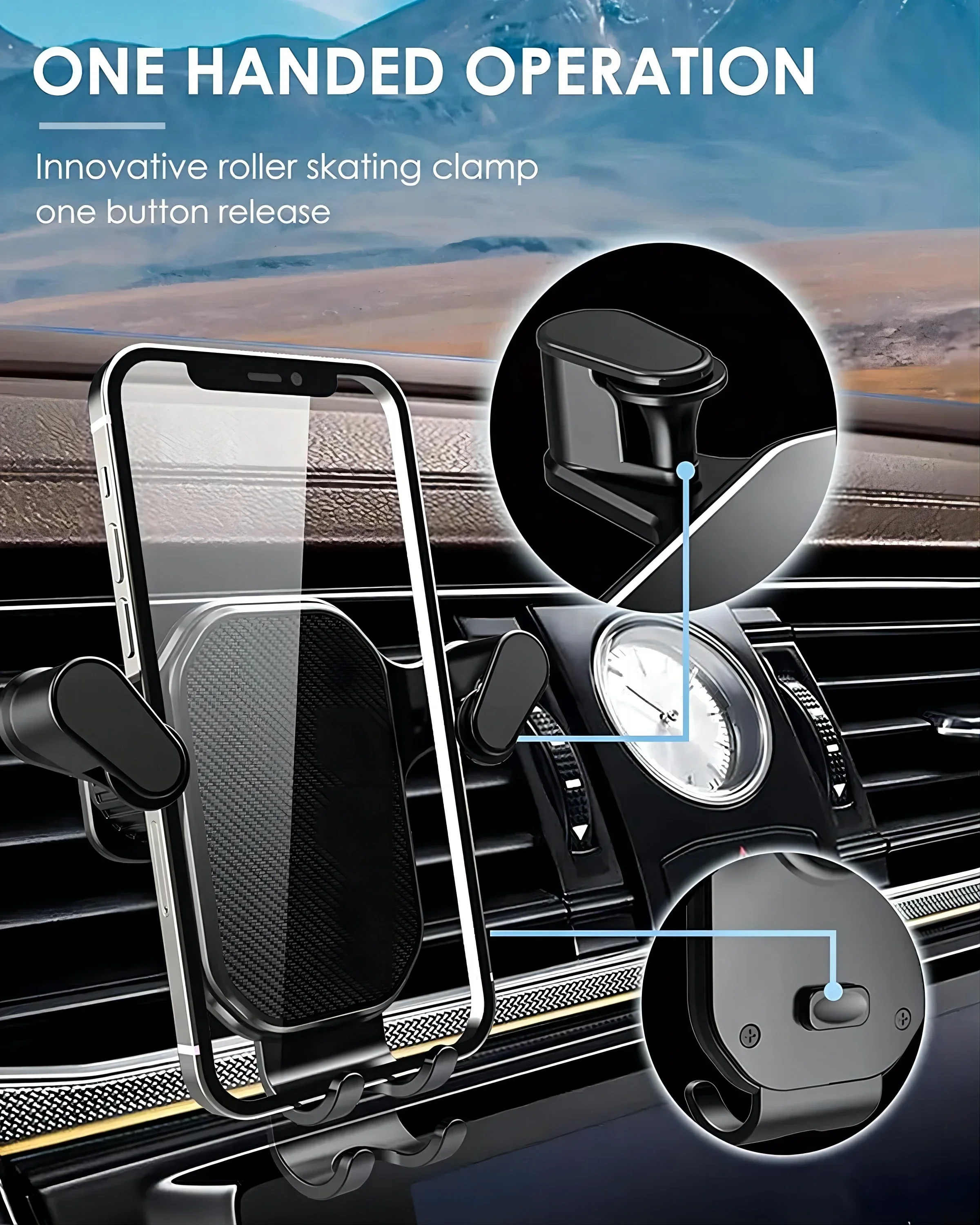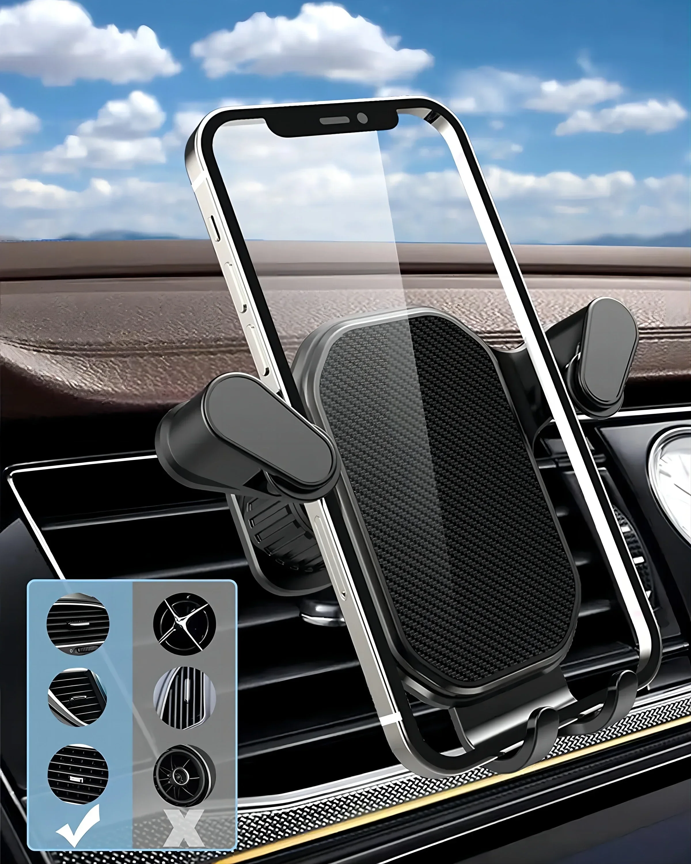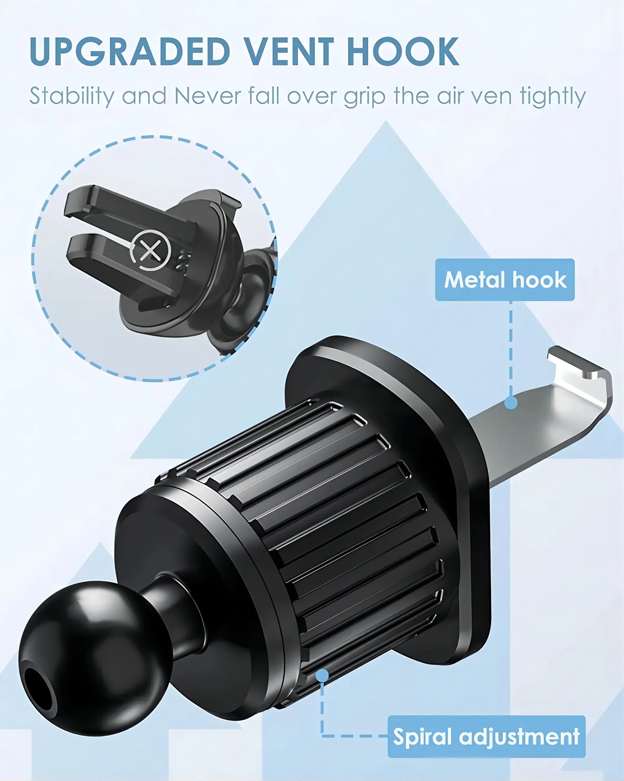 Smart Car Air Vent Phone Holder - 360° Swivel Hook Mount with One-Hand Placement Anti-Shake for All Mobiles