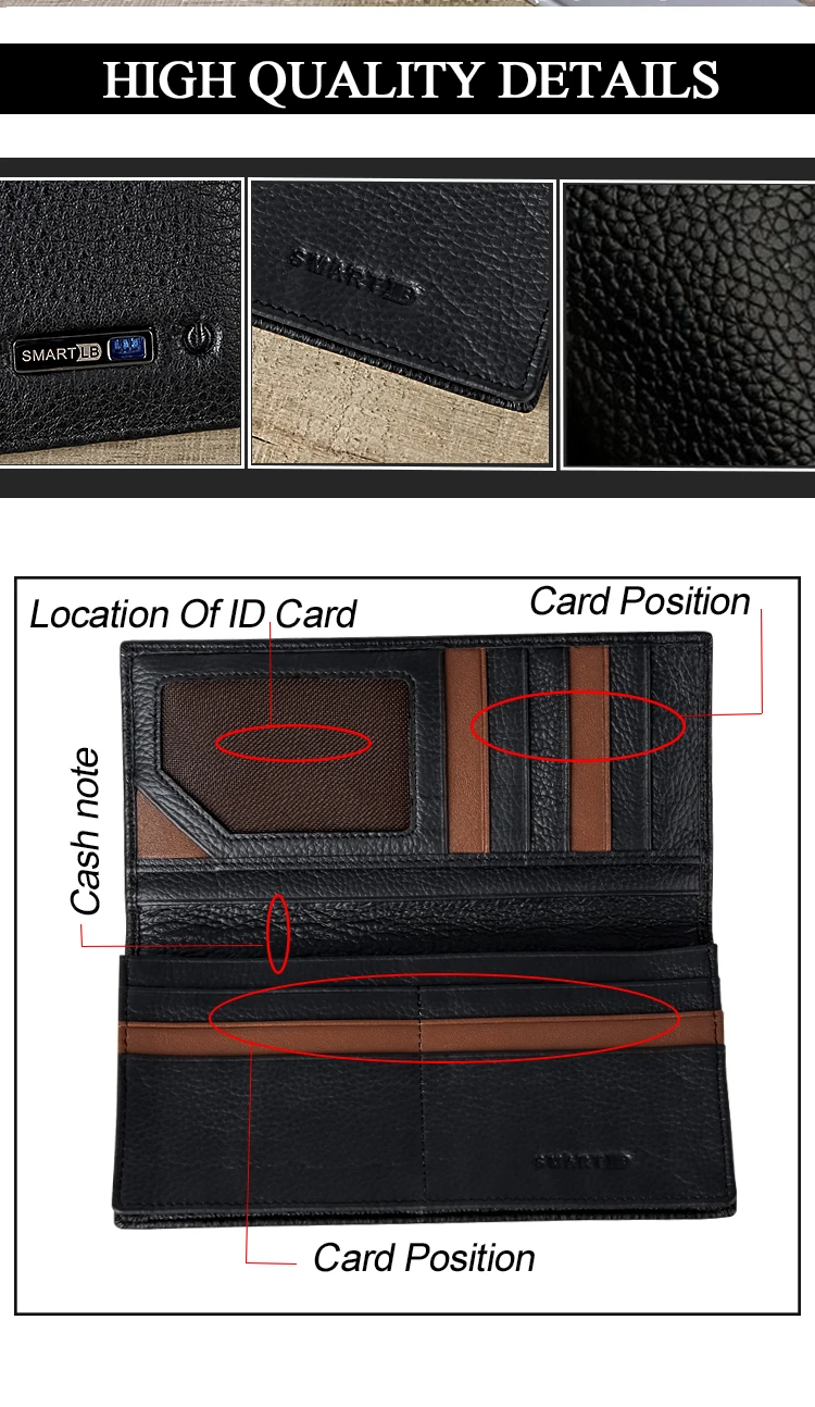 3.The Bluetooth wallet can be connected to the mobile phone via Bluetooth-compatible, and has the functions of anti-theft, anti-lost, and positioning.
