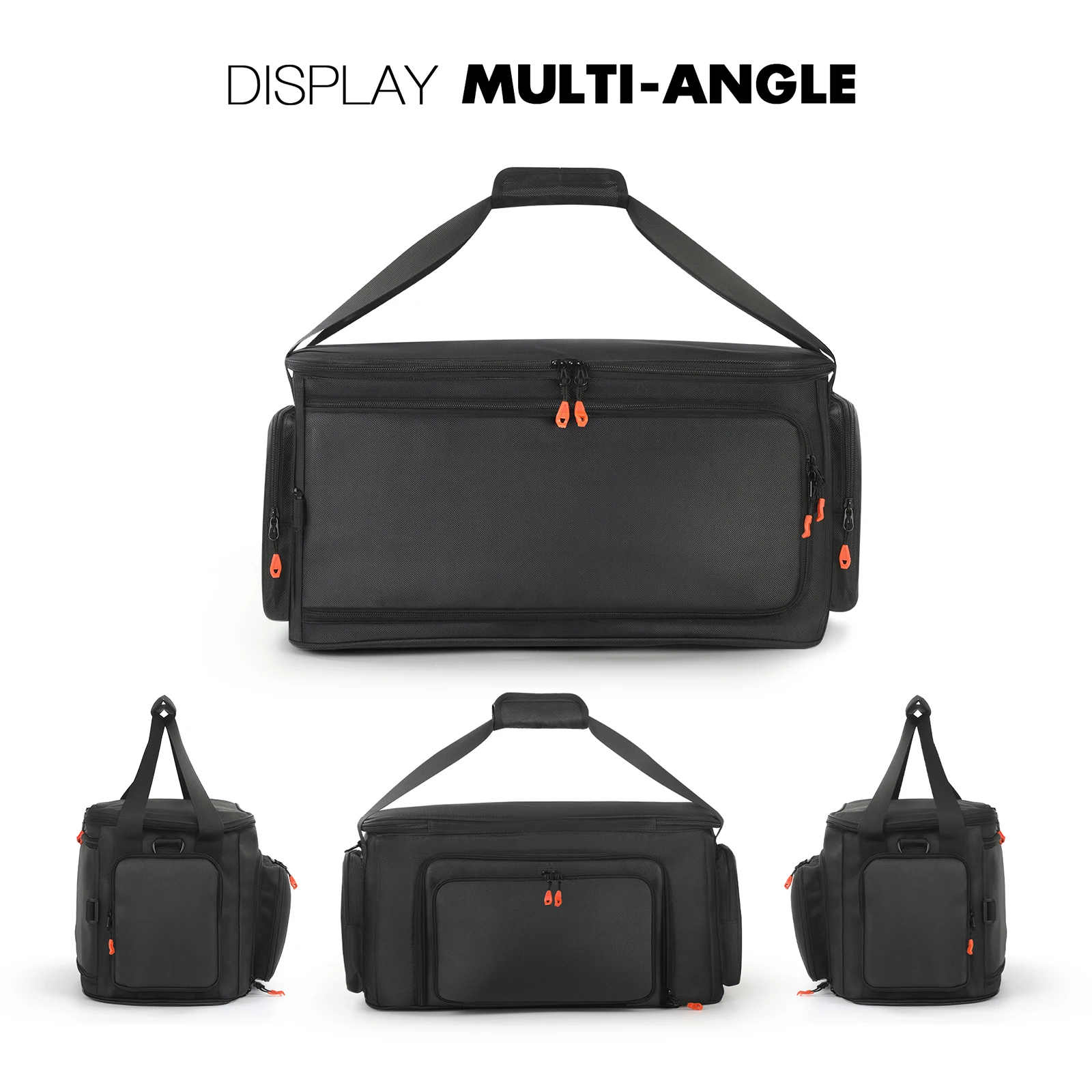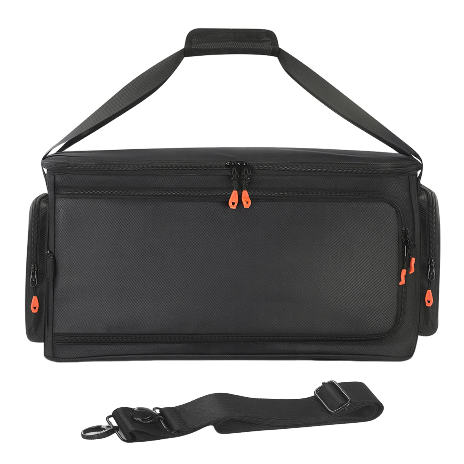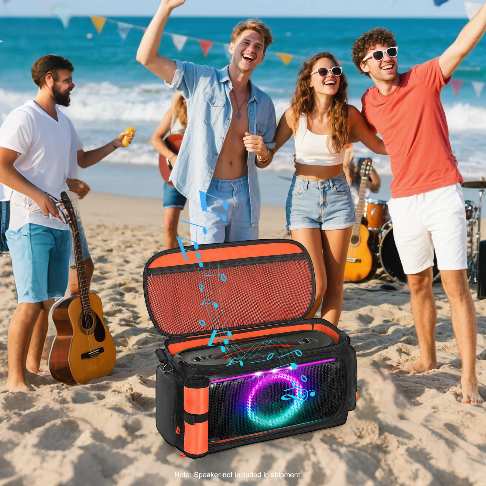 Features: 1.Tailored Compatibility: This carrying case is specifically designed to fit for JBL PartyBox On The Go 2 speaker, for JBL PartyBox On The Go, microphones, and accessories. It ensures a snug fit for all components, making it ideal for effortless travel and secure storage. 2.Convenient Access Design: The travel storage bag features sturdy dual zippers that fully open the front and top, allowing you to play music without removing your speaker. Enjoy uninhibited light shows and hassle-free operation anywhere you go. 3.Reliable Protection: Made from waterproof EVA material, the portable speaker carry tote bag offers excellent dust and splash resistance. Enhanced with thick PE cotton padding, it shields your speaker from knocks and bumps during transit. 4.Collapsible & Portable: Designed for folding storage, this protective case boasts smooth double zippers, an adjustable shoulder strap, and a convenient handle. Easily carry or stow it indoors or outdoors and enjoy music wherever your trip takes you. 5.Spacious Organization: The protective bag includes a dedicated main compartment for the speaker, a rear pocket for 3 microphones, and two zippered side pockets for chargers, cables, and accessories, keeping everything neatly arranged on the move. Specification: Origin: Mainland China Compatible Models: for JBL PartyBox On The Go 2 Speaker / for JBL PartyBox On The Go Speaker Color: Black + Orange Material: EVA Packaging Weight: 1000g Packaging Size: 380.00x320.00x140.00mm / 14.96x12.6x5.51inch