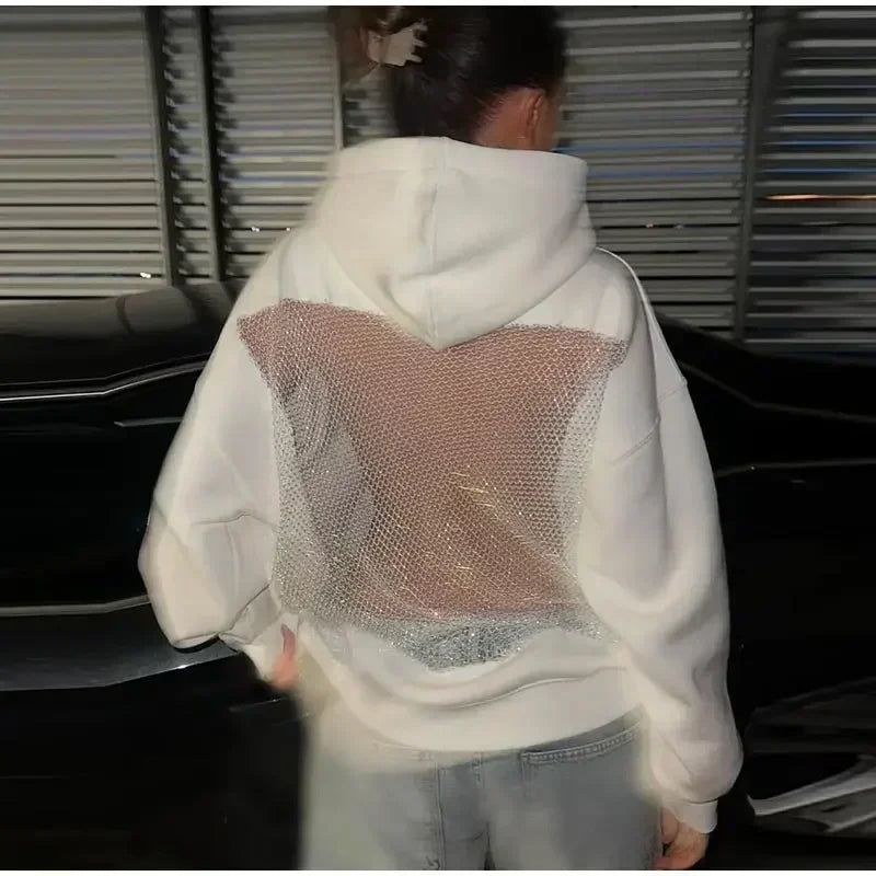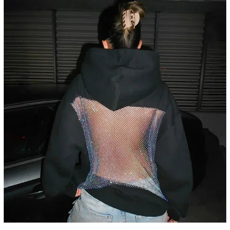 Women's Hoodie Fashion Hollow Out Hoodie Perspective Backless Hoodie Autumn Versatile Fashion Women's Top