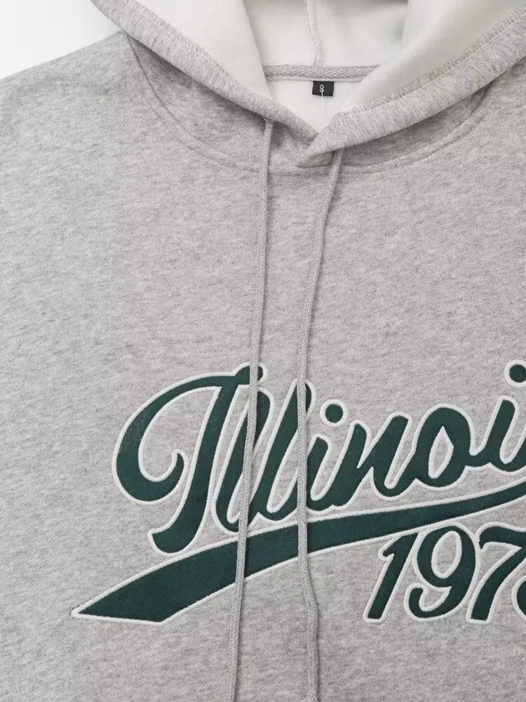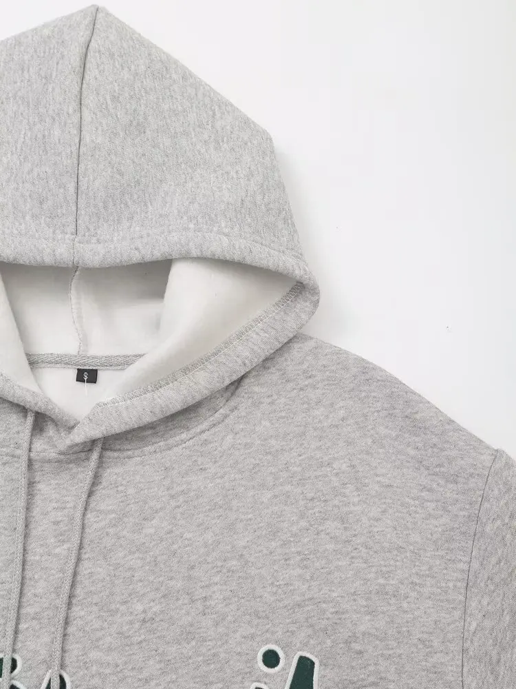 Women's Set Two Pieces Elegant Casual Women's Set Autumn Outfits Sweat Suit Sets Basics Grey Letter Hoodies Sets
