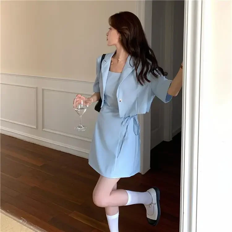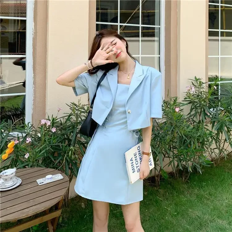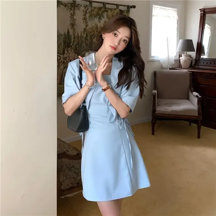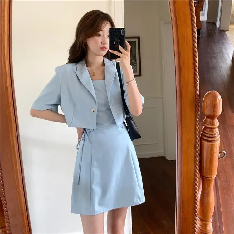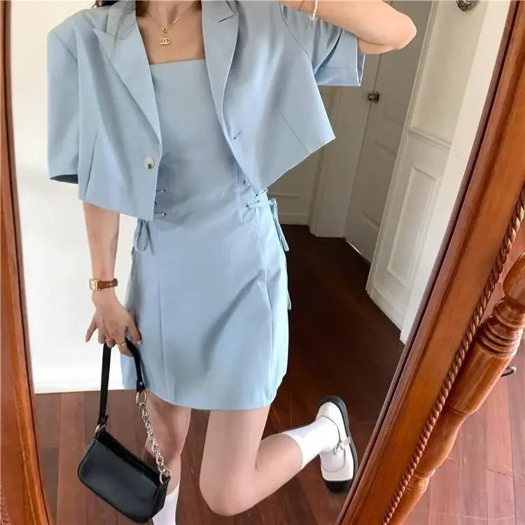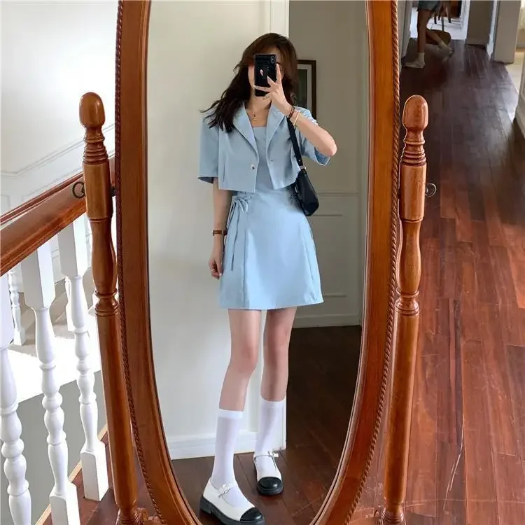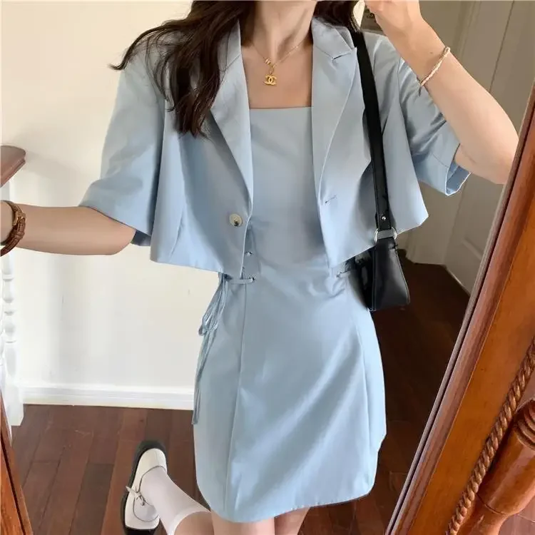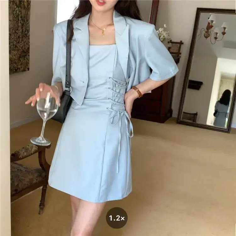 Women's Two Piece Set Lightly Cooked Slim Fit Dress Short Sleeve Commuting Suits Office Kawaii Formal Event Full Female Outfits