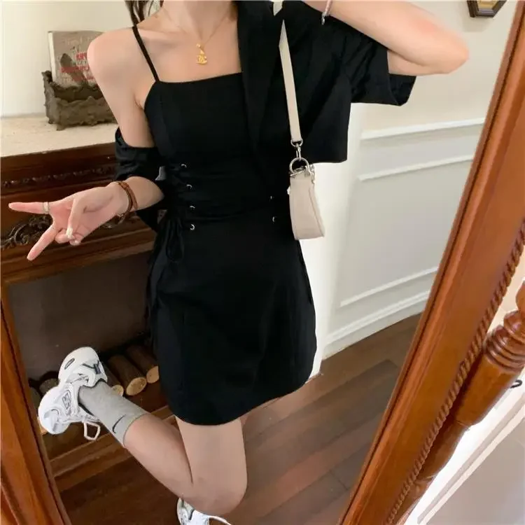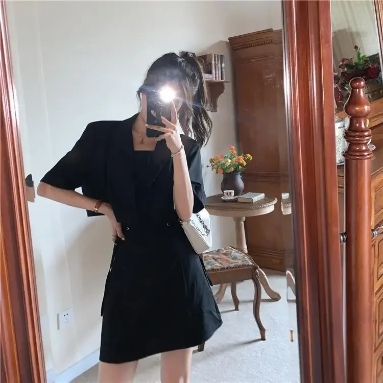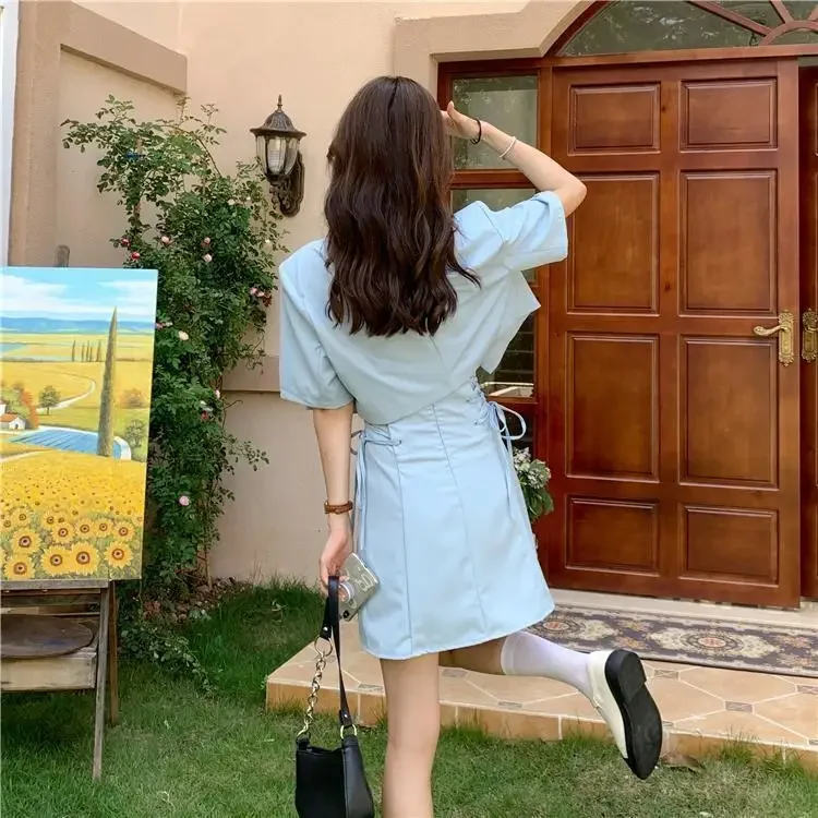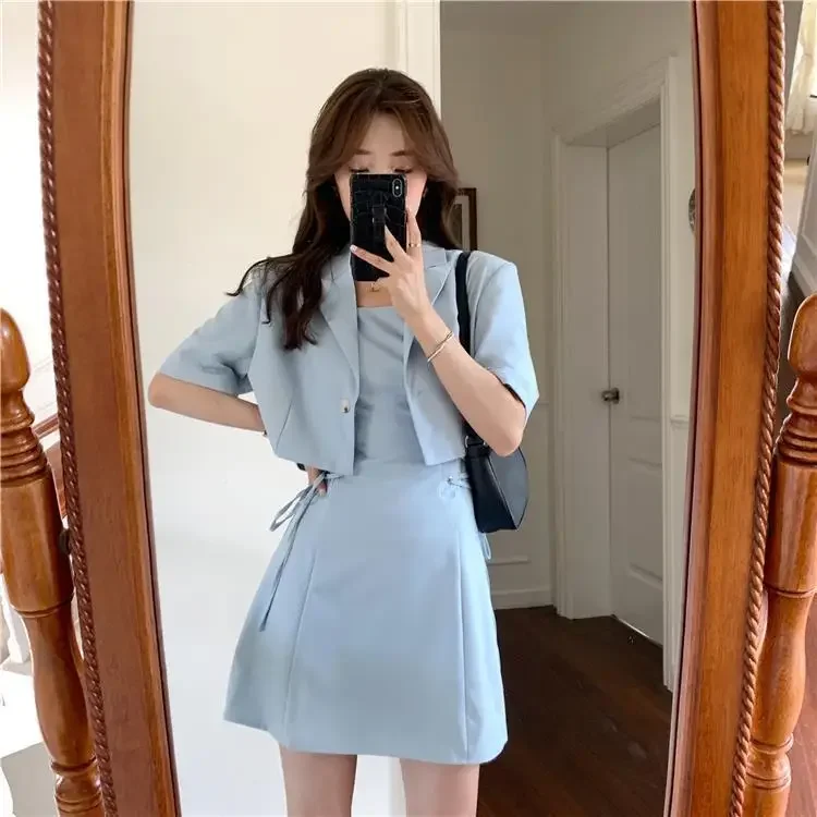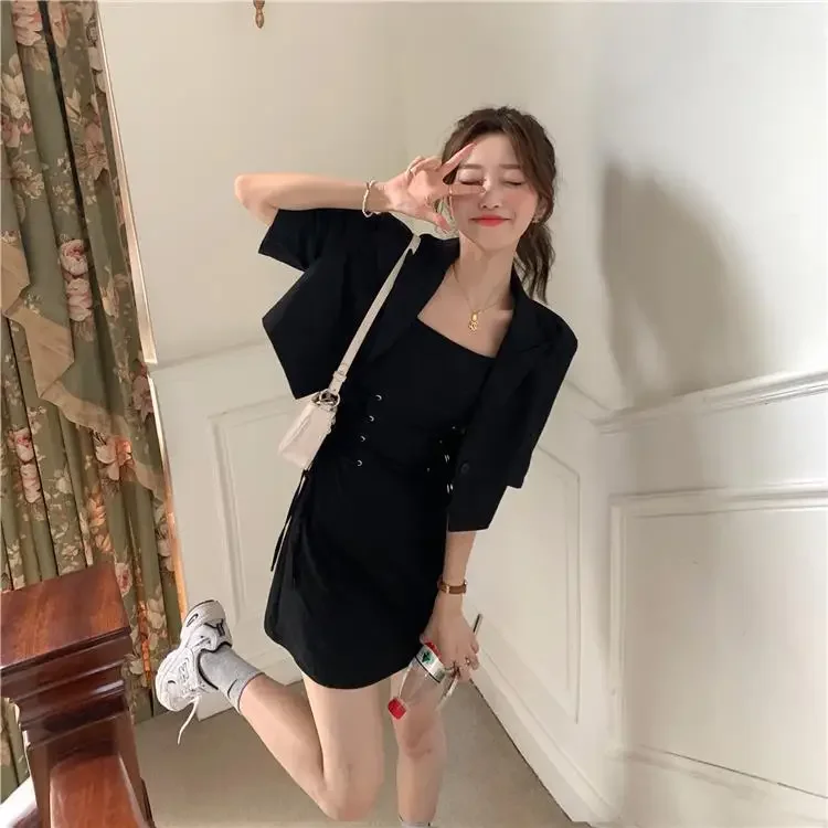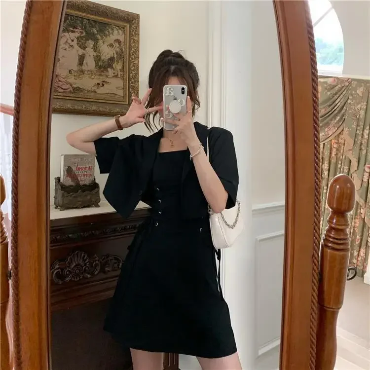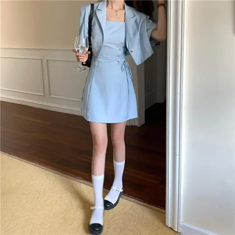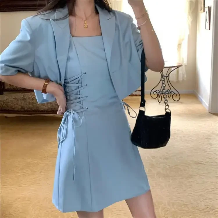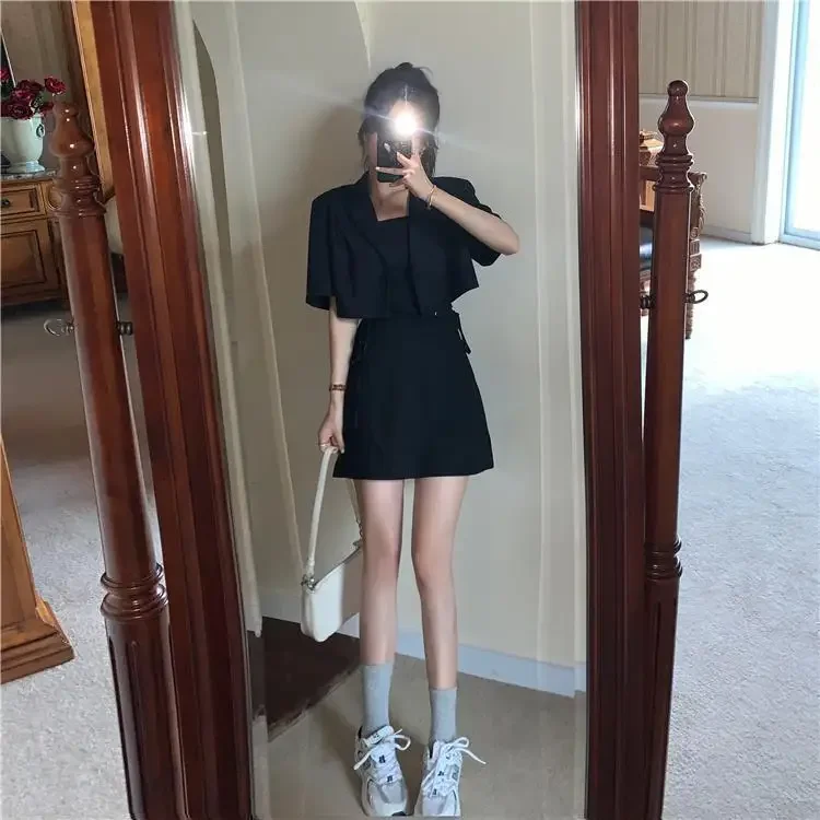 Women's Two Piece Set Lightly Cooked Slim Fit Dress Short Sleeve Commuting Suits Office Kawaii Formal Event Full Female Outfits